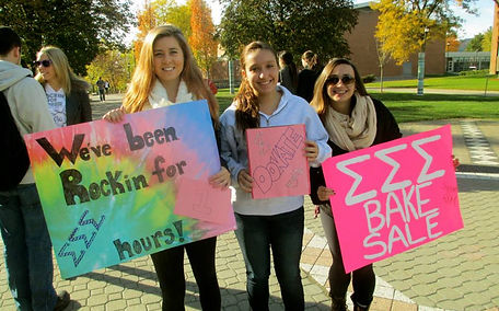 The Zeta Delta Chapter loves to raise as much money as we can for the Robbie Page Memorial. Every semester, we host a "Rockin' 4 Robbie" event in the main quad on campus. Sisters "rock" the day away in rocking chairs to raise money for the philanthropy. We make over $1,000 annually through the rocking chairs, bake sale, and miscellaneous fundraisers we hold at each event! We will post when the next event is.